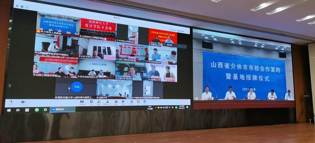 通过云视频会议形式参加了介休市市校合作签约暨基地授牌仪式,与介休市人民政府签订合作协议。此次签约是贯彻落实山西省委、省政府深化省校合作部署要求的具体行动,也是问鼎娱乐