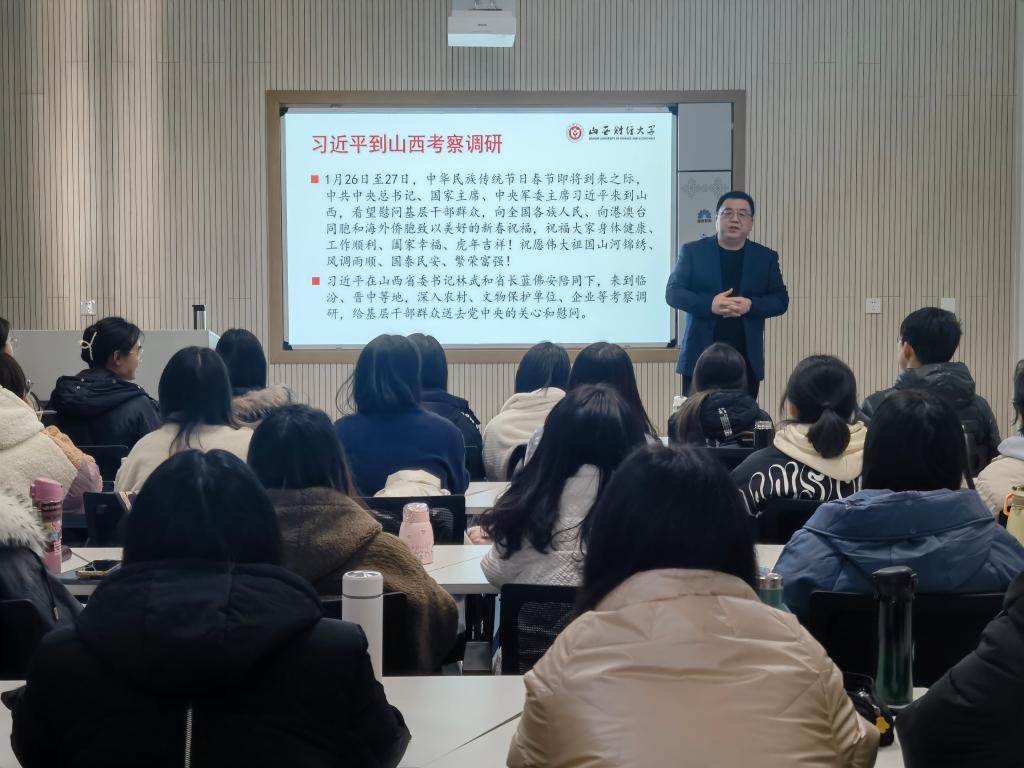 2月23日,党委常委、副校长米子川教授充分发挥课堂教学主渠道作用,结合专业课授课,围绕“学习贯彻习近平总书记考察调研山西重要指示精神”这一主题,在修德楼203教室为问鼎娱乐