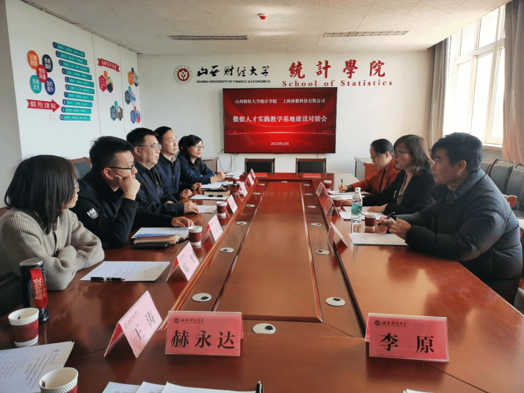 与上海沐数科技有限公司实践教学基地共建对接会在修德楼十二层会议室召开。双方在“助力教育、资源共享、互惠共赢、共同发展”的原则下,就数据人才实践能力培养、数据理论研究与实践创新、数据人才实践教学资源开发等开展全方位的合作实践达成一致意见。