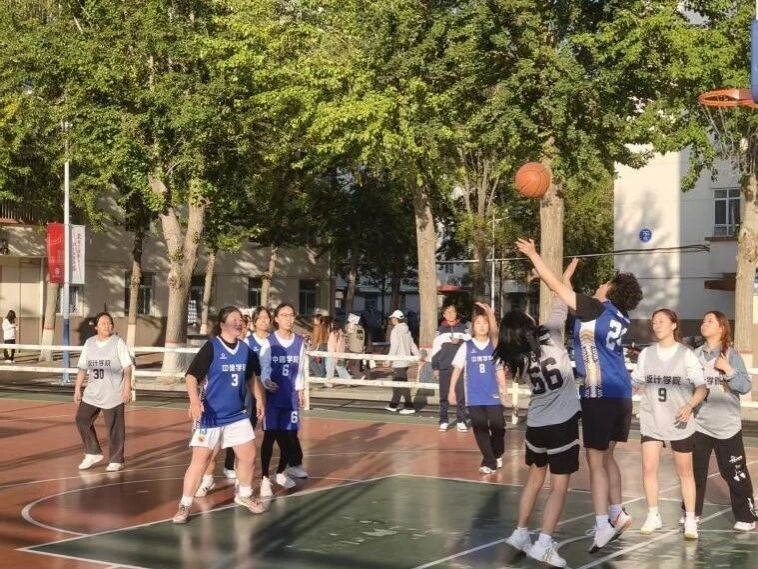 赛场被呐喊声包裹,男生们在篮球场上奔涌如潮。持球突破时的疾风、跃起封盖时的身影、篮板下的激烈争抢,每一个动作都裹挟着热血,展现出统计健儿的顽强风采。