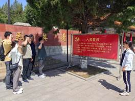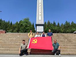 黄坡烈士陵园是为纪念解放太原河西战役和部分抗日战争时期牺牲的革命烈士修建的纪念性陵园,是山西省第一批省级红色文化遗址。在烈士纪念碑前,全体党员和教师列队肃立,向烈士纪念碑默哀致敬。随后面向鲜红的党旗,全体党员高举右拳,重温入党誓词,庄严宣誓,要坚定入党初心和使命,继承先辈革命精神,弘扬党的光荣传统,时刻以党员的标准严格要求自己,对党忠诚、积极工作。