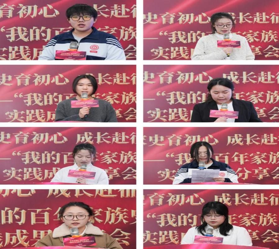报告会高潮迭起,讲者用心,听者动容。赵楠同学运用统计学专业的“变量思维”分析家族发展历程,体现了专业知识与家族史研究的有机融合;亢瑞卿同学借家里祖传的一套木工工具将“做人要直”的家风具象化呈现,让精神传承可触可感;郭轩榕同学以家乡的文峪河为叙事线索,讲述自己的家族从“生存”到“发展”的蜕变之路;魏小凡同学通过老家院子里“军人之家”铁牌,展现了忠诚与奉献的代际传承;张琼戈同学深情讲述了家族跨越山海、矢志求知的坚守;宁姝涵同学则用心回顾了一家人医者世家“仁心济世”的百年初心。