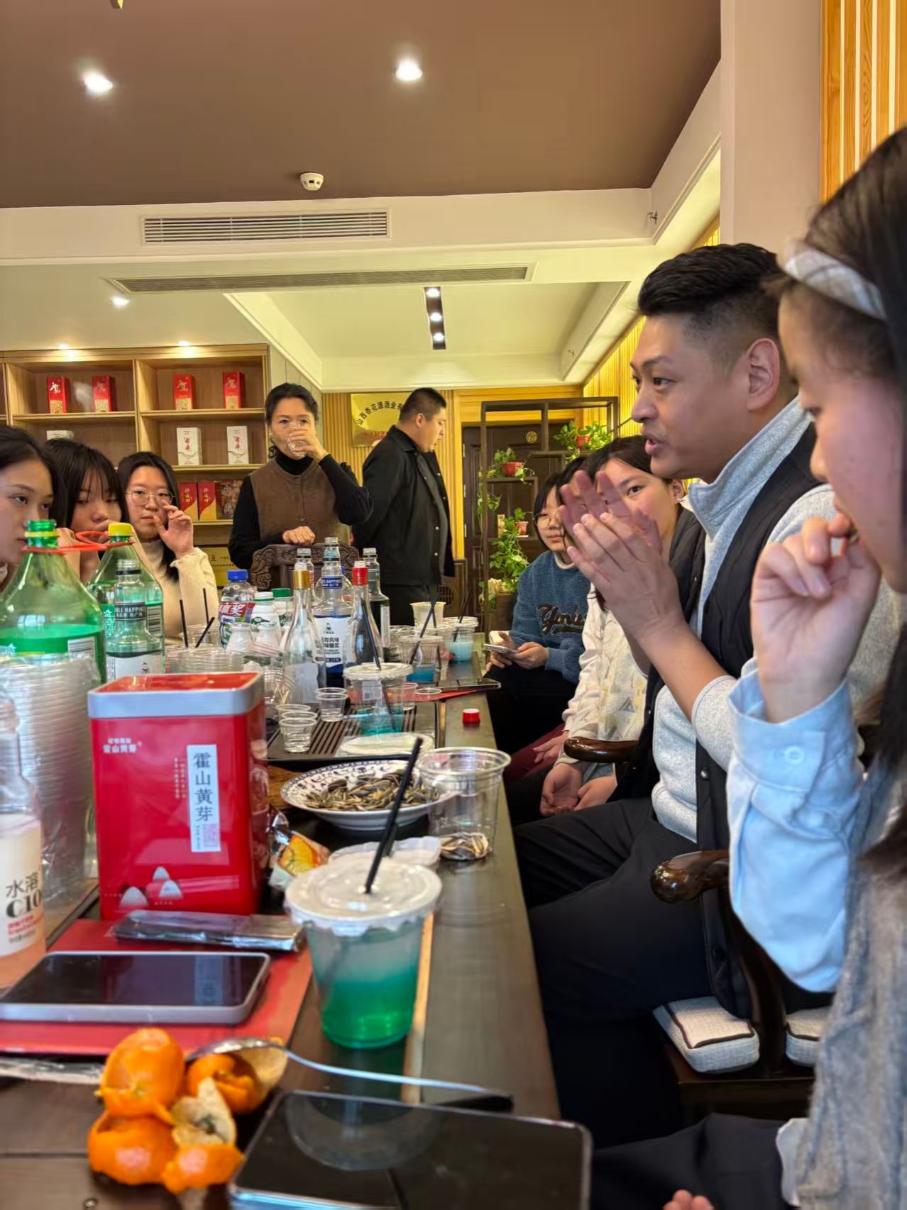 活动伊始,杏花源酒业的专业讲解员为师生们系统梳理了中国白酒的香型体系,并重点深入介绍了清香型白酒的工艺特点、风味构成及品质鉴别要点。随后,讲座内容从产品层面延伸至产业宏观格局。工作人员结合详实的数据与图表,清晰勾勒出山西省清香型白酒产业的现有规模、发展态势、产区分布及产业链结构,分析了其在全省经济布局乃至全国白酒市场中的独特地位与竞争优势。这为问鼎娱乐